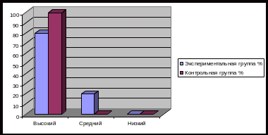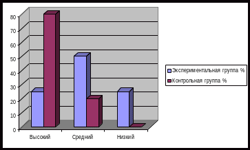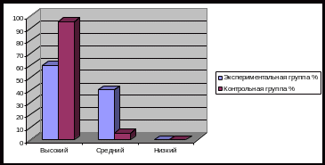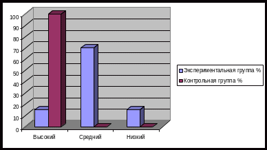 | Уровень развития | Экспериментальная группа | Контрольная группа | ||