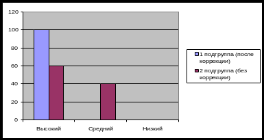 По сравнению с этапом констатирующего эксперимента, уровни устойчивости внимания у дошкольников экспериментальной группы повысились, однако, только у 10% детей, с которыми специальная работа по развитию внимания не проводилась, отмечается высокий уровень развития устойчивости внимания, в то же время высокий уровень зафиксирован у 80% дошкольников, с которыми была проведена коррекционная работа по развитию внимания с использованием игровых приемов.