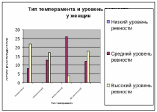 Рис.2.7 Тип темперамента и уровень ревности (женщины, N=120)