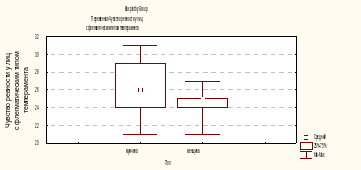 Из представленной диаграммы размаха видно, что мужчины с флегматическим типом темперамента ревнивы в большей степени, чем женщины с тем же типом темперамента, поскольку размахи значений и медианные значения по выборке мужчин выше, чем по выборке женщин.