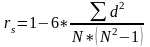 Расчет коэффициента ранговой корреляции Спирмена rs.