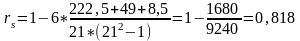 Итак, рассчитаем ранговую корреляцию, согласно полученным результатам: