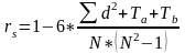 Поскольку в обоих сопоставляемых ранговых рядах присутствуют группы одинаковых рангов, перед подсчетом коэффициента ранговой корреляции необходимо внести поправки на одинаковые ранги Ta и Tb: