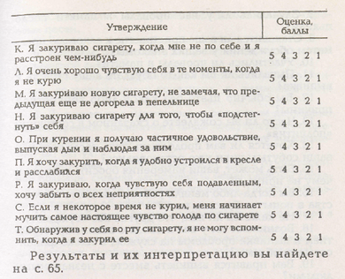 Если ваши ответы приходятся в основном на первые три мотива, это значит, что ваша зависимость от табака скорее психологического, чем физиологического характера, В принципе, занимая руки чем-то более «безопасным», чем сигарета (карандаш, ручка, ключи), вы легко могли бы избавиться от курения. Шансы, что вам будет нетрудно сделать это, у вас высокие.