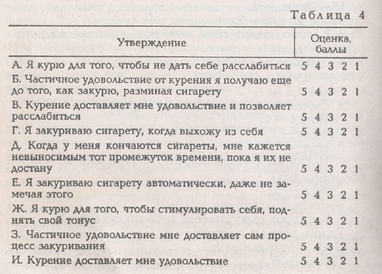 Хотите узнать, почему вы курите? Дайте ответ на каждый вопрос в табл. 4, обведя цифру в соответствующей колонке кружком. Если ваш ответ полностью совпадает с утверждением, получаете 5 баллов, полностью не совпадает — 1 балл. Остальные баллы — промежуточные.
