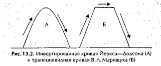 Рис. 2. Инвертированная кривая Йеркса—Додсона (А) и трапециевидная кривая В.Л.Маришука (Б)