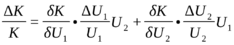 то относительную погрешность измерения отношения двух напряжений можно записать так: