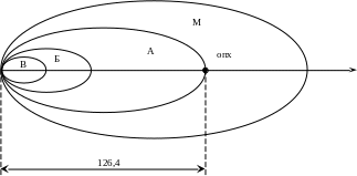 Для заданного типа ЯЭР (РБМК – 1000) и доли выброшенных радиоактивных веществ (n = 30%), определяем размеры прогнозируемых зон загрязнения местности и наносим их в масштабе в виде правильных эллипсов.