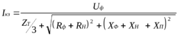где Uф - напряжение сети ; Rф и Rн - активные, а Хф и Хн - внутренние индуктивные сопротивления фазного и защитного нулевого проводников соответственно ; Хп - сопротивление взаимоиндукции петли фаза - ноль.