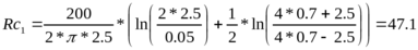 По рассчитанным данным можно сделать вывод, что для обеспечения качественного заземления на грунте достаточно одного заземленного электрода, в то время как на глинистой почве необходимы несколько электродов, соединенные стальной полосой сечением 4х12 мм и длинной 2,5 м. Определим сопротивление растекания тока для полосы :