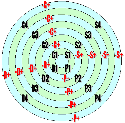 | Ns: | Индивид (D) | Креативность (С) | Социум (S) | Малый социум (P) |