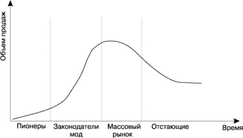 Сначала — “пионеры”, позже — “законодатели моды”. Самая массовая группа покупателей появляется на стадии зрелости и насыщения рынка. Они и принесут основной доход компании, став верными сторонниками данной марки. Теперь о любителях новинок, “пионерах”, можно не вспоминать — они уже переключились на следующие товары. Вот еще одна причина, чтобы на стадии роста интенсивность продвижения товара была максимальная: