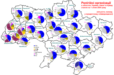 кожна з українських Церков є переважно регіональною і не має рівномірного впливу на всій території країни;