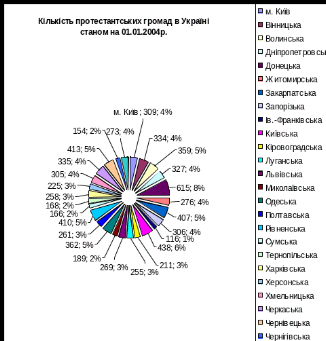 Рис. 26 Кількість протестантських громад в Україні станом на 01.01.2004р.