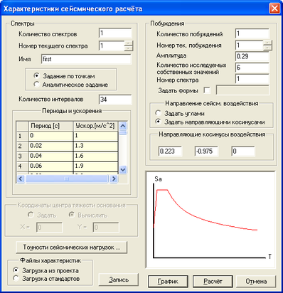 5.5.4 Расчетные параметры сейсмического воздействия, вводимые в расчет. Составление таблицы РСУ
