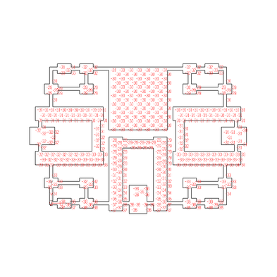 В направлении оси Ох здание колеблется поступательно, однако имеется и вращательная составляющая. Это вызвано неравномерной расстановка диафрагм и ядер жесткости.