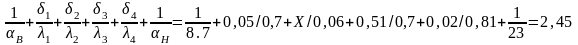 1/8,7 + 0,163 + утеп/0,11 + 0,04/0,76 + 1/23 = 3,7 ,