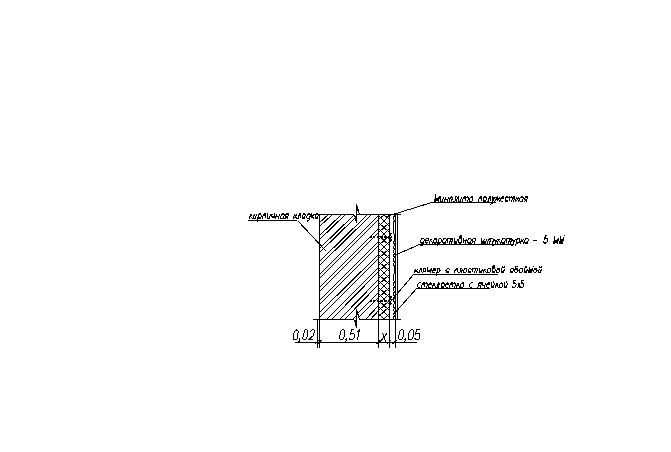 Горизонтальная гидроизоляция по верху монолитной фундаментной плиты выполнена из слоя цементного раствора состава 1:2 толщиной 20 мм, марка 100 с уплотняющими добавками. Горизонтальная гидроизоляция на отметке -0,370 по периметру всех стен выполнена аналогично. Вертикальные поверхность стен подвала, соприкасающиеся с грунтом обмазываются горячим битумом за 2 раза.