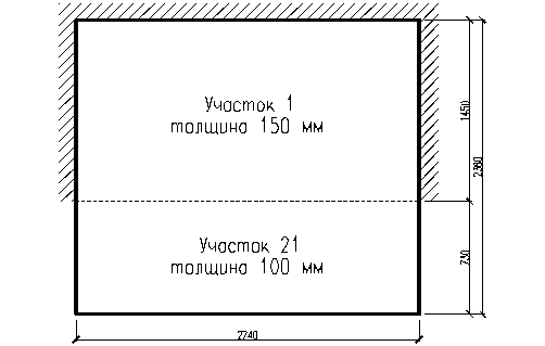 Расчет плиты лоджии произведен на компьютере с помощью программы «ЛИРА 9.4». Плиту разделяем на 2 участка с различной толщиной и условиями опирания (рисунок 5.2.):