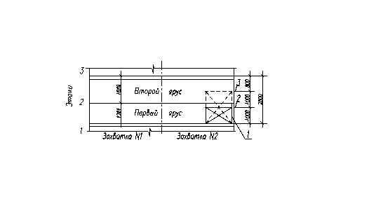 Предусматриваем деление каждого этажа на 2 яруса высотой 1,2 и 1,6 м и на 2 захвата (рис. 6.1)