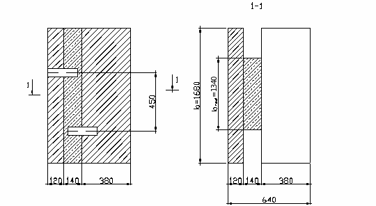 Глубина заделки панелей перекрытий в стену 12 см, тогда равнодействующая с перекрытий будет приложена на расстоянии 12/3 = 4 см от внутренней грани стены и эксцентриситет приложения этой нагрузки ео = 0,5*64 – 4 = 28 см. Изгибающий момент, вызываемый ею в сечении 1–1 Ml = 90,85*0,28 = 25,44 кН*м.
