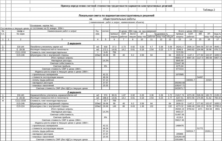 | 3 | Трудоемкость осуществления вариантов: | чел.- час | 6957 | 8551 | 15946 | ||