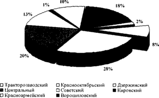 Рис. 1.3. Прогноз ввода в действие жилых домов по районам города в 2009г.