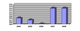 Как видно из рис. 2.2 общая численность персонала в 2004 и 2005 г. оставалась относительно стабильной, в 2006 г. снизилась и составила 101 человек, в 2007 г. снова возросла до 113 человек и осталась неизменной и в 2008 г.
