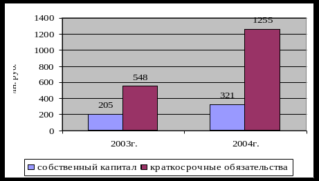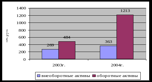 Как видим, значительную долю активов в 2003-2004гг. составляют оборотные активы – более 60%, их доля существенно выросла еще на 12,69% в 2004г.