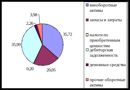 Рис. 2.4 Структура актива баланса на начало 2004г., %