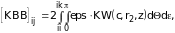 Коэффициенты матрицы KRB вычисляются с использованием фундаментального решения Миндлина KW3 и интегрирования выражения