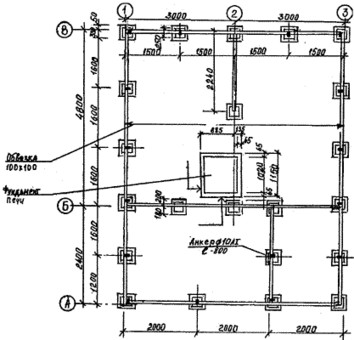 Рис. 2. Зразковий план фундаменту палі для літнього садового будинку (стіни дерев'яні)