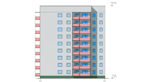 Вход в здание расположен посередине главного фасада здания и служит входом в жилую часть здания. По требованиям строительной теплотехники на входе устроен двойной тамбур, предотвращающий проникновение уличного холодного воздуха в помещения в холодное время года. Глубина тамбура - 2000мм. Над тамбуром устроен козырек из консольной ж/б плиты. Детали крепления плиты показаны на листе 7 графической части.
