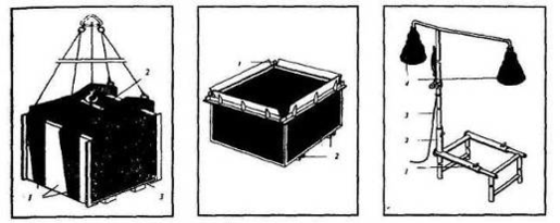 Бак для змочування цегли. Ємкість, яку заповнюють водою (рис. 17). У жарку і суху погоду піддони з цеглою опускають у бак, змочують і подають на робоче місце.
