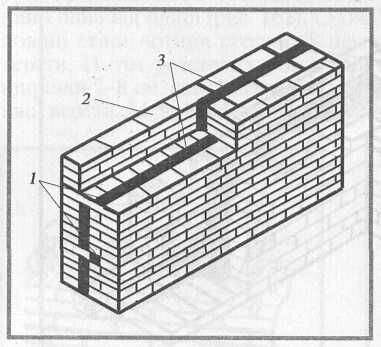 Рис. 40. Кут стіни цегляно-бетонного анкерного мурування: