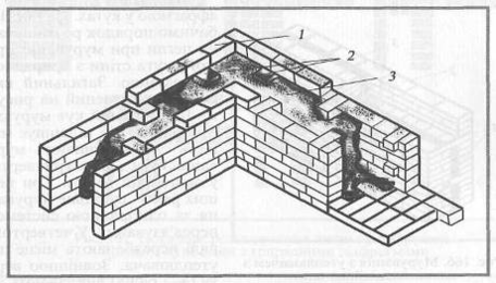 Між верстами вкладають утеплювач, поверх якого виконують розчинову стяжку, і починають мурувати наступний ярус.