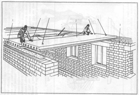Укладати плити починають з торцевих стін будинку або від сходової клітки з інвентарних помостів (рис. 47).