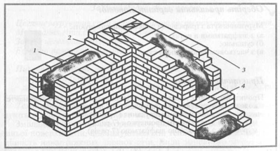 Правильність заповнення швів розчином перевірте, виймаючи у різних місцях окремі цеглини викладеного ряду. Таку перевірку необхідно робити через кожні 3 ряди по висоті поверху.