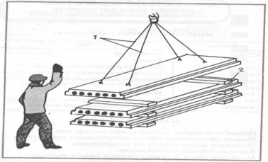 Стропують плити міжповерхового перекриття чотиривітковим стропом і подають до місця укладання у горизонтальному положенні (рис. 46). Склад ланки становить 4 чоловіка.