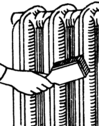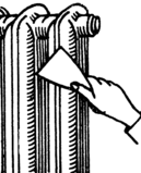 Проолифил труб, решеток и т.п. с помощью валика (валики сдвоенные поролоновые валики, ванночка, лестница-стремянка, ведро; рис.6). Маляр, нажав большим пальцем руки на рычаг, раздвигает валики, а затем набирает на них олифу.