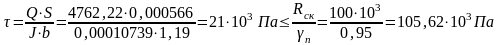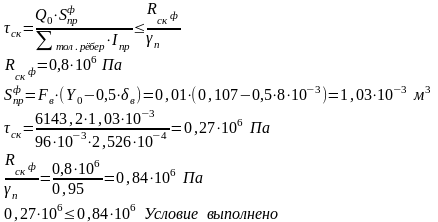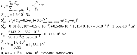Проверка на скалывание по клеевому шву между шпонами фанеры в местах приклейки к рёбрам.