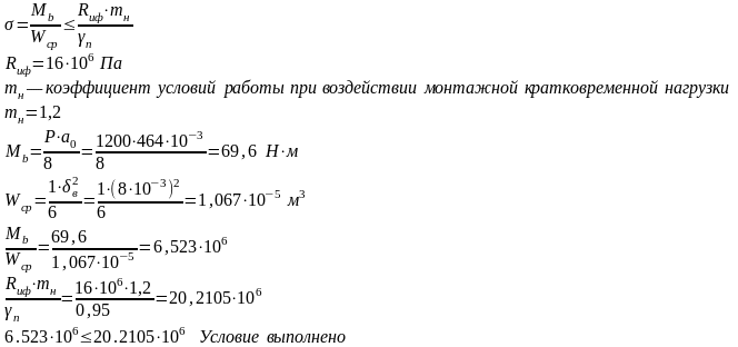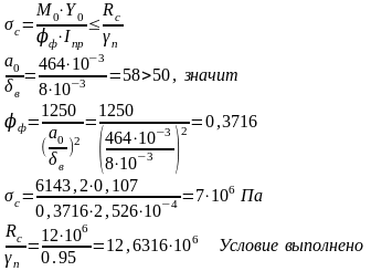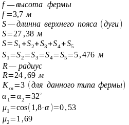 Ферма опирается на клеедощатую стойку высотой 7,5 метров. Сечения всех элементов спроектированы на основе соответствующих глав СНиП II—25—80 исходя из условий прочности и устойчивости, если это требуется.