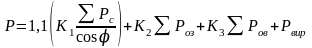 К1, К2, К3 – коефіцієнти одночасної витрати потужності: К1 = 0,75;