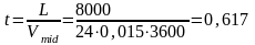 L - відстань по фарватеру від місця випуску стічних вод до розрахункового створу, L= 8000 м по завданню$