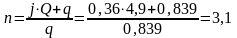 q- середня витрата стічних вод, що скидаються у водоймище, = 0,839 м3/сек;