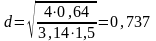 V - швидкість руху води в напірних водогонах, приймаємо 1,0 – 1,5 м/с.