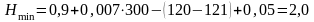 h min = 0,7 + d = 0,7 +0,2 = 0,9 м;