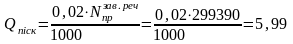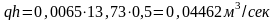 Vh – вихідна швидкість зливної води, 0,0065 м/сек;