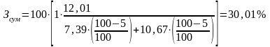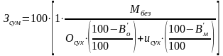 Для розрахунку розпаду осаду та мулу по беззольній речовині при зольності осаду Зос=30%; зольності мулу Змул=30% та гідроскопічній вологості осаду та мулу Ві=5%; застосовуємо наступні формули: