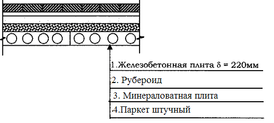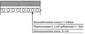 | Пароизоляция (1слой рубероида) | δ*γ=0,003*6000=18 | 1,2 | 22 | |